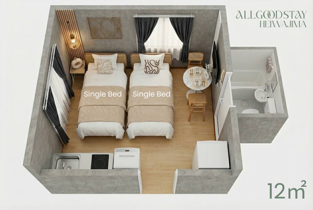 【Room Features】 Private studio for up to 2 guests,2 single beds,Bright, clean space with hotel-style bedding TV with Netflix, YouTube, Prime Video(no japanese channels) High-speed Wi-Fi, kitchen, microwave Parcel drop box for longer stays 【Great Access】 1 min walk to Heiwajima Station (Keikyu Line) 10 min by train / 15 min by taxi to Haneda Airport (~¥2,100) 120 min to Narita Airport via direct train Shinagawa 6min, Tokyo 19min, Shibuya 23min, Shinjuku 31min, Yokohama 14min Disney Resort: 48min by train or 60min by bus (from Kamata) 【Nearby Spots】 Supermarkets, drugstores: 1 min walk FamilyMart, 7-Eleven: 2–3 min walk Many restaurants (ramen, soba, curry, burgers, gyudon, etc.) Big Fun Heiwajima and Heiwajima Onsen also nearby 【Check-in / Check-out】 Check-in: From 16:00 (early check-in available upon request) Check-out: Until 11:00 Luggage lockers available at Heiwajima Station(30sec walk) 【Amenities】 Shampoo, conditioner, body soap, toothbrush Hand soap, slippers Kitchen tools, microwave, refrigerator Parcel box, mailbox *No elevator (stairs only) 【Reservation Info】 Calendar is always up to date Licensed under Japanese Hotel Business Law All guest names required Passport copy required for non-Japanese nationals 【Lastly】 We’re committed to providing a clean, safe, and comfortable stay. Enjoy your time in Tokyo with great access and a cozy space. Looking forward to welcoming you!