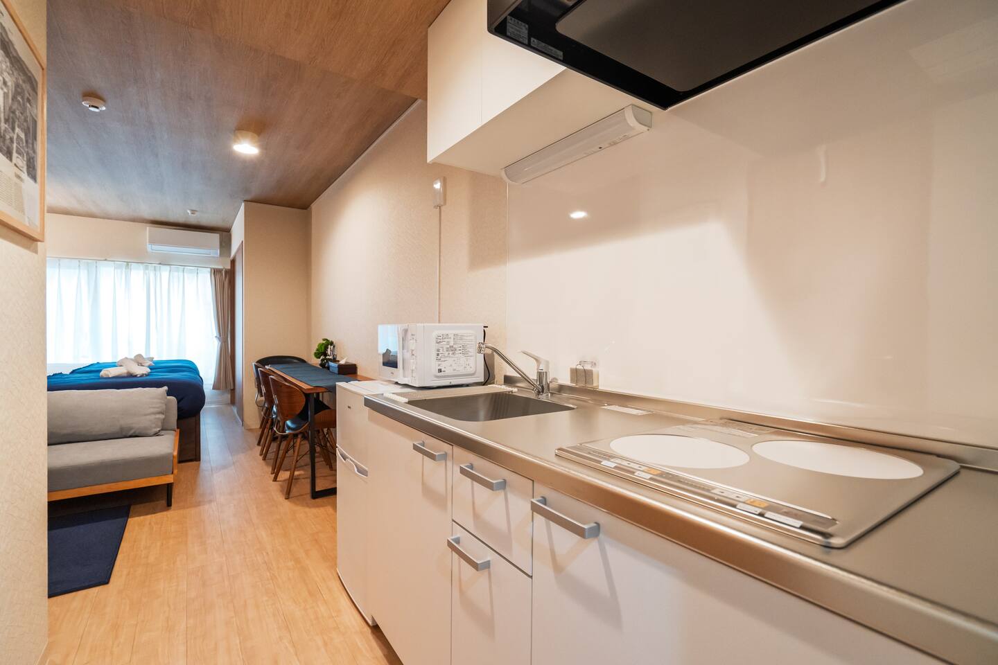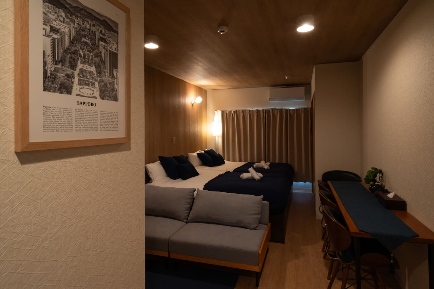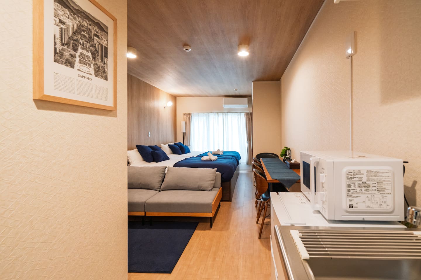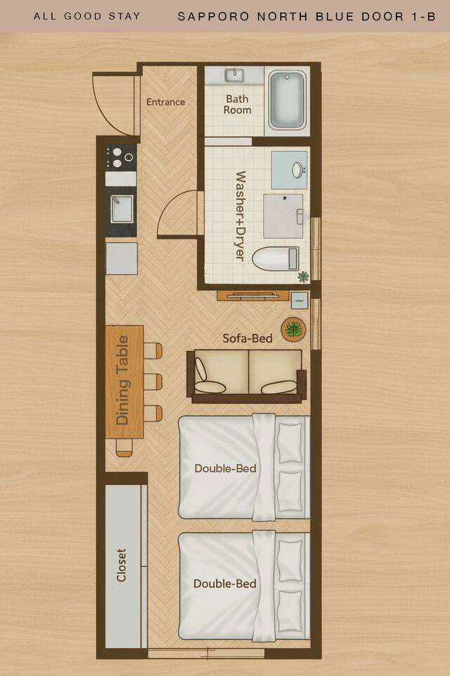 【Room Features】 ・Fully private 1R apartment (29㎡) located on the ground floor – Easy-to-access ground floor unit ✨ ・Accommodates up to 5 guests – Max: 5 guests – Best suited for up to 4 guests for comfort 2 double beds 1 sofa bed ・Bright, clean space with comfortable beds and linens ・Large TV with Netflix, YouTube, and Prime Video access(no local TV) ・High-speed Wi-Fi / Kitchen with microwave available ⸻ 🛏 Private Room (29㎡) – Entire Unit • Ground floor unit, ideal for up to 5 guests (best for 4 or fewer) • Beds: 2 double beds, 1 sofa bed • Bright & clean space with comfy bedding • Large smart TV with Netflix, YouTube, Prime Video • Fast Wi‑Fi, kitchen & microwave 📍 Prime Location • 4‑min walk to Kita‑18‑jo Station (Namboku Line) • Quick direct access: Sapporo Sta (2 min), Odori (4 min), Susukino (6 min) • 6 min walk to Hokkaido Univ & Hospital • Convenience stores, supermarket & eateries within 5 min 🌟 Nearby Attractions & Ski Access • Sapporo Beer Garden – 10 min by car (20 min by transit) • Odori Park & Sapporo TV Tower – 6 min • Clock Tower – 8 min • Hokkaido Shrine & Maruyama Zoo – ~20 min by car • Ski resorts: Kokusai & Teine (55 min), Kiroro (1 h 5 min), Rusutsu (1 h 25 min), Niseko Hirafu (1 h 50 min), Furano (2 h) 🕒 Check‑in/out • Check‑in: from 16:00 (early requests possible) • Check‑out: by 11:00 🧴 Amenities Shampoo, conditioner, body soap, toothbrush, hand soap, slippers Kitchen essentials, microwave, fridge, mailbox ✅ Booking Info Fully licensed under Japan’s Hotel Business Law Guest names required; passport copy for non‑Japanese guests Calendar always up-to-date Enjoy a clean, comfortable stay and ideal Sapporo location—we look forward to hosting you!