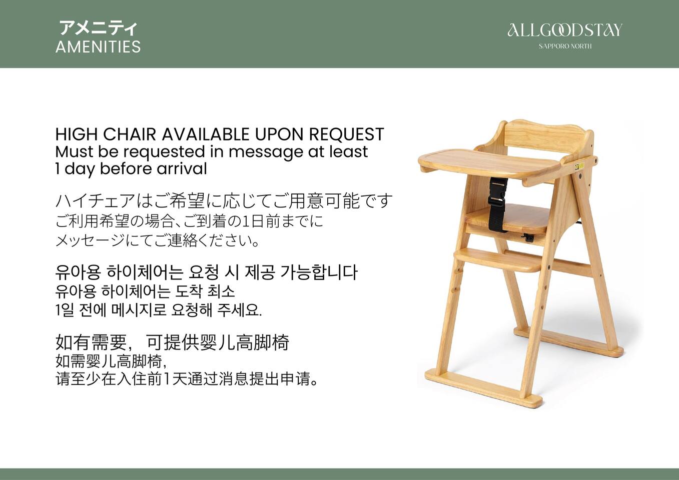 To ensure a pleasant stay for everyone, please read and follow the rules below: -Smoking is strictly prohibited, including e-cigarettes. Please refrain from smoking near the entrance as well. -Parties and loud music are not allowed. -Please keep noise to a minimum during nighttime to avoid disturbing neighbors or other guests. -If we receive a noise complaint from other guests or neighbors, you may be asked to leave immediately, even at night. An emergency response fee of ¥11,000 will be charged. -If you wish to extend your check-out time, please inform us by the day before. Unnotified late check-out past 11:00 AM will result in the following charges: 30 minutes: ¥1,000 60 minutes: ¥2,000 No contact is needed if you check out by 11:00 AM. We kindly ask guests to check out on time for the next guests. -If any vomiting or serious mess occurs, a cleaning/damage fee will be charged. -Illegal drug use is strictly prohibited. If discovered, we will immediately report it to the police. -We cannot control or compensate for external factors such as construction noise, neighbors’ sounds, or temporary odors from the surrounding area. Refunds or discounts cannot be issued for these reasons. -If you have any concerns about odors or cleanliness inside the room or other conditions within the facility, we will be happy to assess the situation together with you on-site. Please note that if you check out without prior consultation, we will not be able to offer any refunds or discounts. We kindly ask for your understanding before making a reservation. ⸻ ✅ Important Check-in Requirements -The names of all staying guests must be provided. -Guests of foreign nationality are required to submit a copy of their passport. -We cannot send check-in instructions without these details, so please ensure they are provided in advance. ⸻ Thank you very much for your understanding and cooperation. We wish you a wonderful stay.