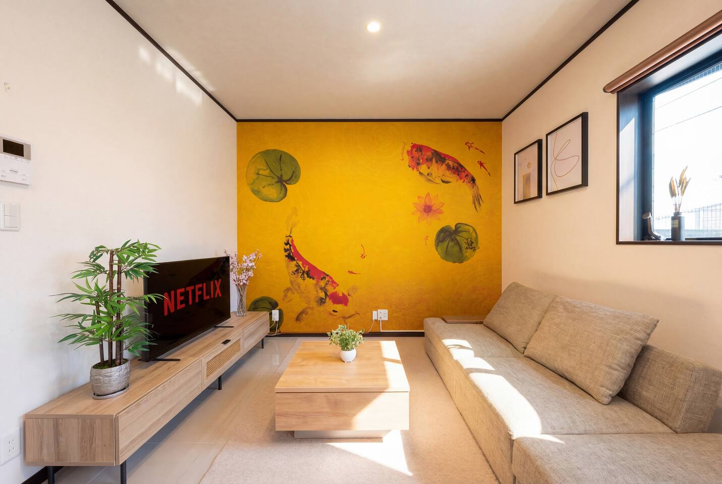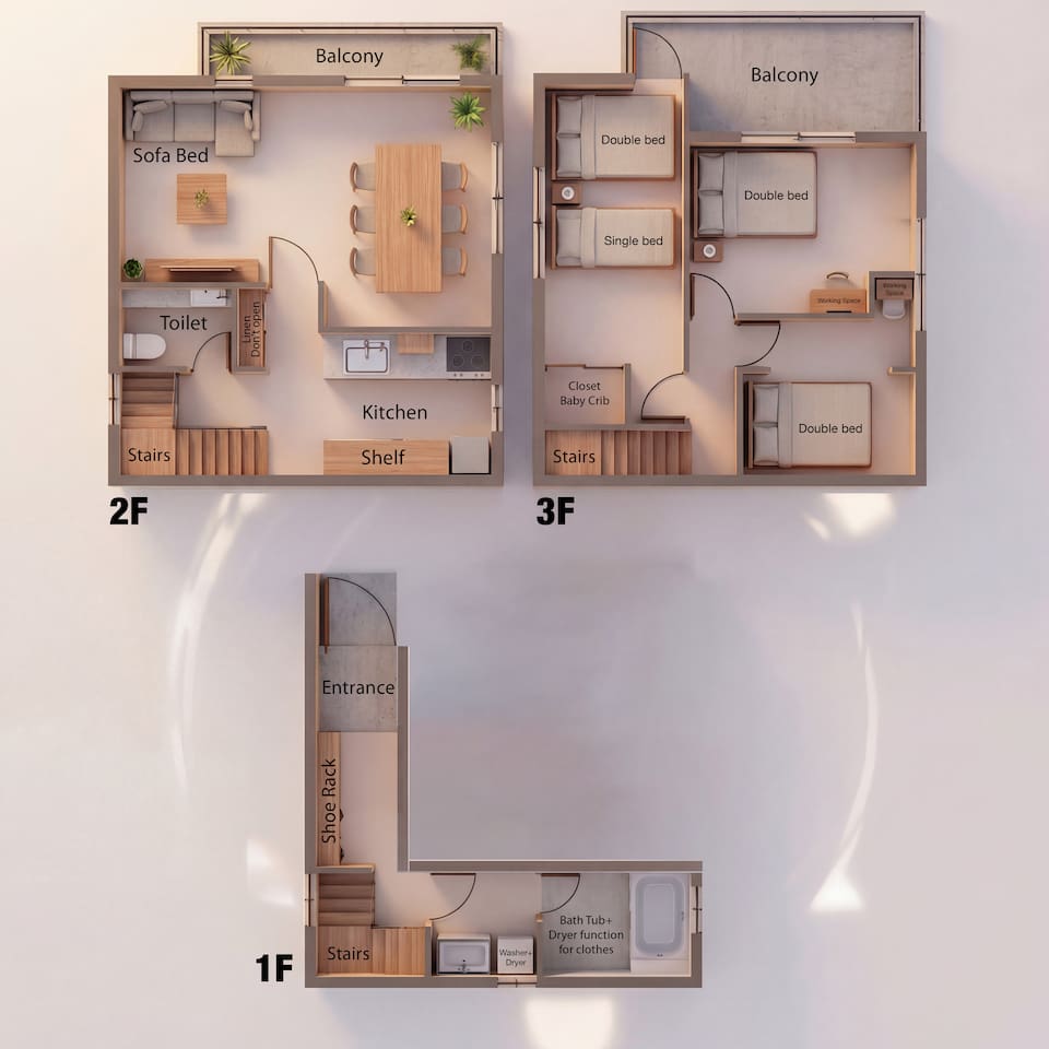 🏡 Entire House (87㎡ / 3 Bed Rooms) • Air conditioning and heating in all rooms • High-speed Wi-Fi • 2 dedicated workspaces • Smart TV (Netflix / YouTube / Prime Video)*No Japanese Channels • Family board games: UNO / Monopoly / Twister / Jenga / Playing Cards • Baby crib & high chair included • Private entrance • Free on-site parking (fits large 8 seater cars) • Security camera + motion-sensor lights at entrance ⸻ 🍽️ Kitchen • Gas stove • Microwave • Built-in dishwasher • Rice cooker • Electric kettle • Double-door fridge • Full cookware & utensils • Child-friendly dish ware • Trash bins • Medical care kit • Plenty of storage space ⸻ 🛋️ Living & Dining Room • Cherry blossom tree décor • KOI mural wall art • 43” Smart TV with streaming apps • Large sectional sofa-bed • Dining table for 10 guests • Air conditioning with heating • High chair for kids • UNO / Monopoly / Twister / Jenga / Playing Cards • Trash bins • Balcony ⸻ 🛏️ Bedroom #1 • 1 single bed + 1 double bed • 1 futon mattress set • Baby crib • Large closet • Nightstand with soft lamp • Air conditioning with heating 🛏️ Bedroom #2 • 1 double bed • Work desk & chair • Sakura folding screen • Access to balcony • Blackout curtains • Air conditioning with heating • Balcony 🛏️ Bedroom #3 • 1 double bed • 2 futon sets for sofa-bed or floor • Work desk with window view • Desk lamp • Air conditioning with heating ⸻ 🛁 Bathroom & Laundry • Japanese soaking tub with temp control • Rain-style handheld shower • Shampoo / conditioner / body soap • Hair dryer • Washer + dryer combo • Laundry detergent and softer • Large vanity sink • Mirror with lighting & outlets • Built-in ceiling dryer (for overnight clothes drying) 🚽 Toilet Room • Japanese washlet bidet with heater toilet • Built-in sink • Large mirror & counter • Upper & under-sink storage • Ventilated window 🚉 Prime Access Location: • 4-min walk to Kameari Station (JR Joban Line) • Tokyo Metropolitan Tōbu Chiiki Hospital 5min • Haneda Airport: 60 min by direct limousine bus (¥1,200) • Narita Airport: ~45 min by train (1 transfer) • Ueno 15min / Asakusa 20min / Akihabara 20min / Tokyo 25min / Shinjuku 30min ⏰ Check-in: From 16:00|Check-out: By 10:00 🧳 Luggage storage available on request or use lockers at Kameari Station 🚭 House Rules: No smoking (including e-cigarettes)|Quiet hours: 9 PM–7 AM 📜 Licensed under Japan’s Hotel Business Law All guests must register full names. Passport required for non-Japanese guests. 📍Local restaurant & attraction guide available via Host’s Guidebook.